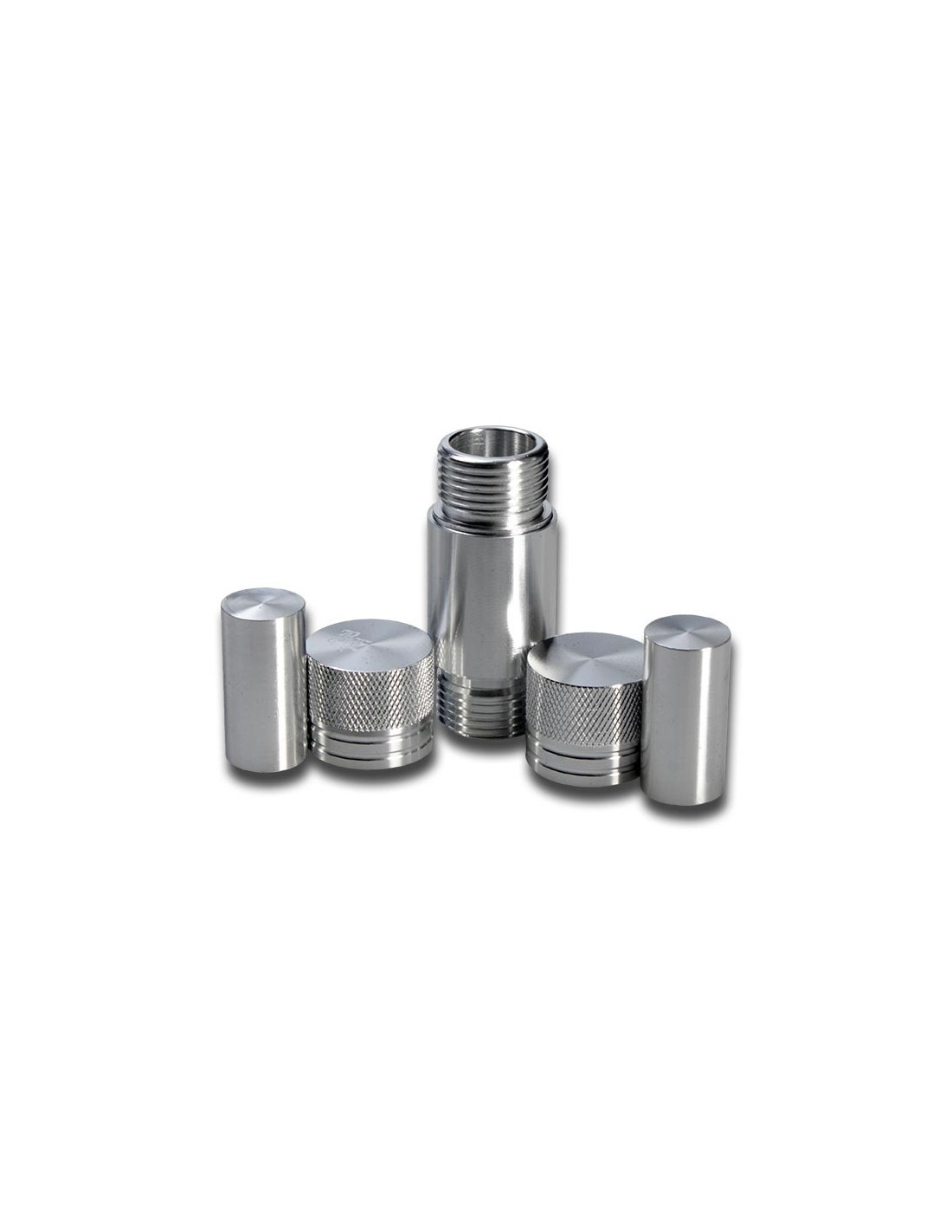 Pressapolline Black Leaf, pratico e maneggevole con tappo a vite su entrambi i lati. All'interno ci sono 2 cilindri di metallo che calzano perfettamente all'interno, basta svitare il tappo, togliere un cilindro, inserire il materiale da pressare in mezzo e richiudere con forza.